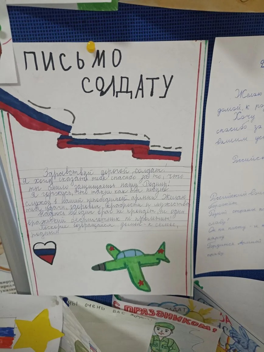 С целью патриотического воспитания подрастающего поколения в рамках празднования Дня Защитника Отечества и реализации мероприятий Месячника патриотического воспитания, в 67 лицее была проведена акция "Я верю в тебя, солдат". Учащиеся 1-11 классов писали письма и изготавливали открытки с поздравлениями, словами благодарности и пожеланиями скорейшей победы участникам специальной военной операции, а также с пожеланиями скорейшего выздоровления находящимся в госпиталях. Писали слова благодарности медицинскому персоналу за их нелегкий труд, женам/вдовам участников СВО, женщинам - участникам СВО. Открытки и письма были переданы в учебно-методический центр военно-патриотического воспитания молодёжи "Авангард -Тольятти" (МБОУ ДО "Центр Гранит").
