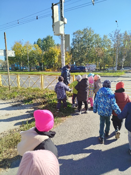В рамках городской акции "Внимиание - дети! Дорога в школу" воспитанники подготовительной группы № 91 вместе с воспитателем Бариновой Е.С. совершили экскурсию по безопасному маршруту в детский сад, познакомились с работой светофора на пешеходном переходе.
